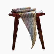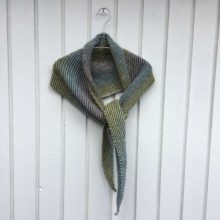 Retstrikket tørklæde som som er let asymetrisk, og har form som et smalt sjal.